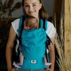 Little Frog Prime Linen Turquoise – Porte-bébé Nouveau-né En Lin