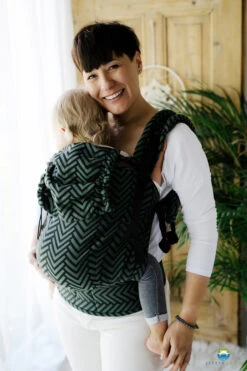 Our preschooler carrier is sewn with jacquard fabric certified to Oeko-Tex Standard 100 (Class 1) (the same fabric we use to make baby slings). It is an airy, breathable fabric that is ideal for carrying at any time of the year.
