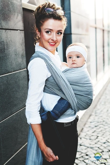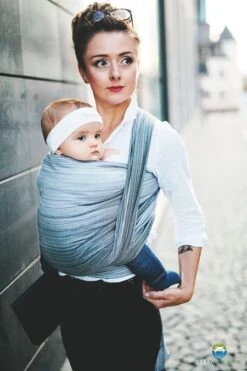 En coton et lin, cette écharpe dans les tons de gris est parfaite pour porter bébé en toute circonstance!