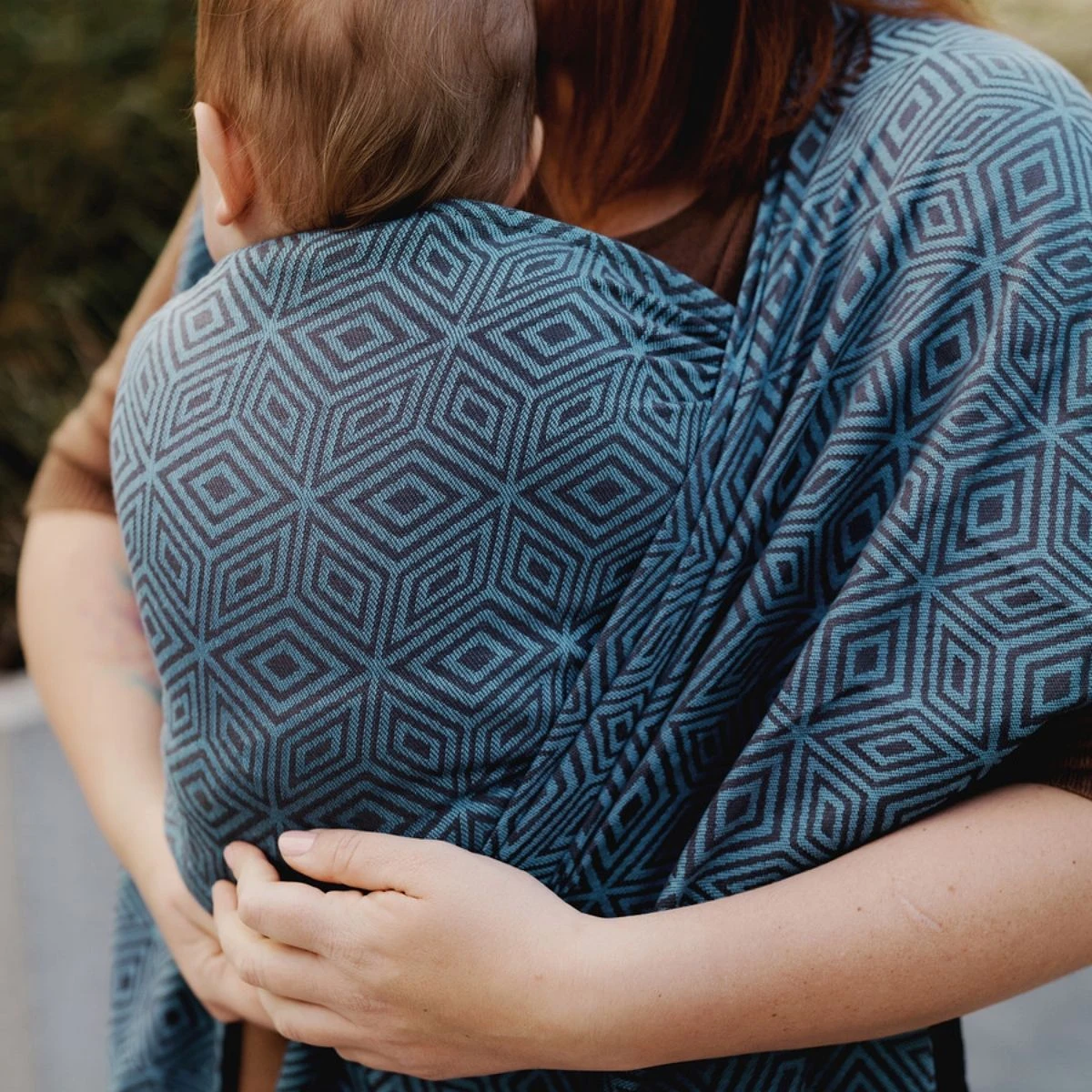 Retrouvez le motif cube au format écharpe de portage dans les modèles Emerald Cube, Golden Cube et Stormy Cube pour des versions émeraude, or et bleu.