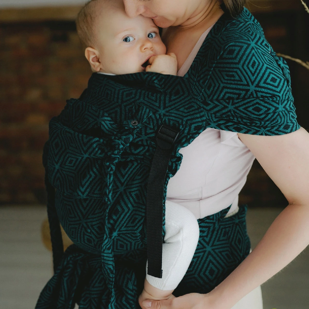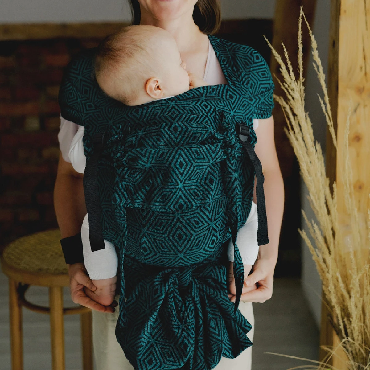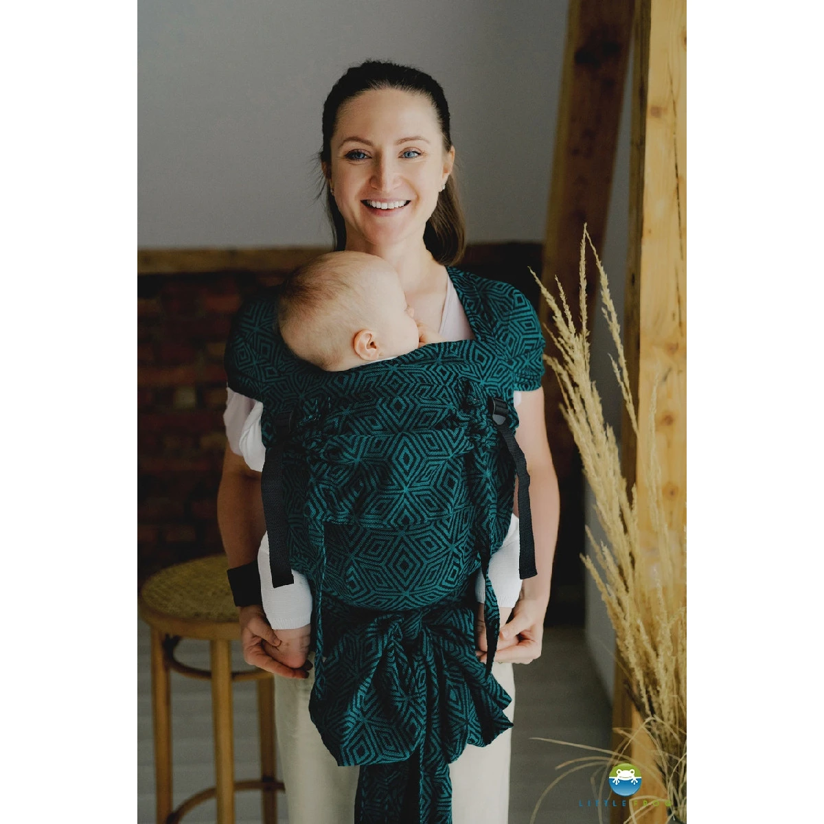 Le Cross Hybrid Emerald Cube de Little Frog est l’outil idéal pour un portage hybride entre un préformé et un portage en écharpe. La combinaison entre une ceinture solide et sécurisante et de longs pans qui se nouent confortablement permet de porter confortablement pour bébé et les parents.