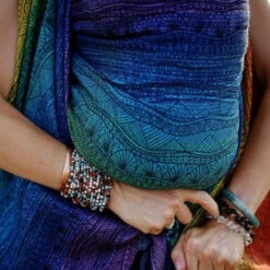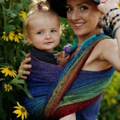 Le modèle d’Ă©charpe de portage Rainbow Harmony est un vĂ©ritable arc-en-ciel de couleurs. Il passe du violet au rouge et viendra Ă©veiller votre bĂ©bĂ©.