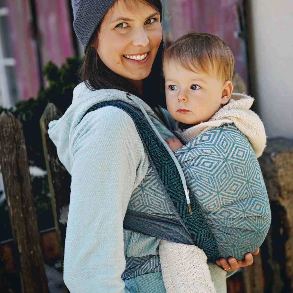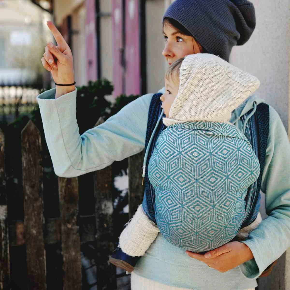 Modèle : Little Frog écharpe de portage – Evergreen Cube