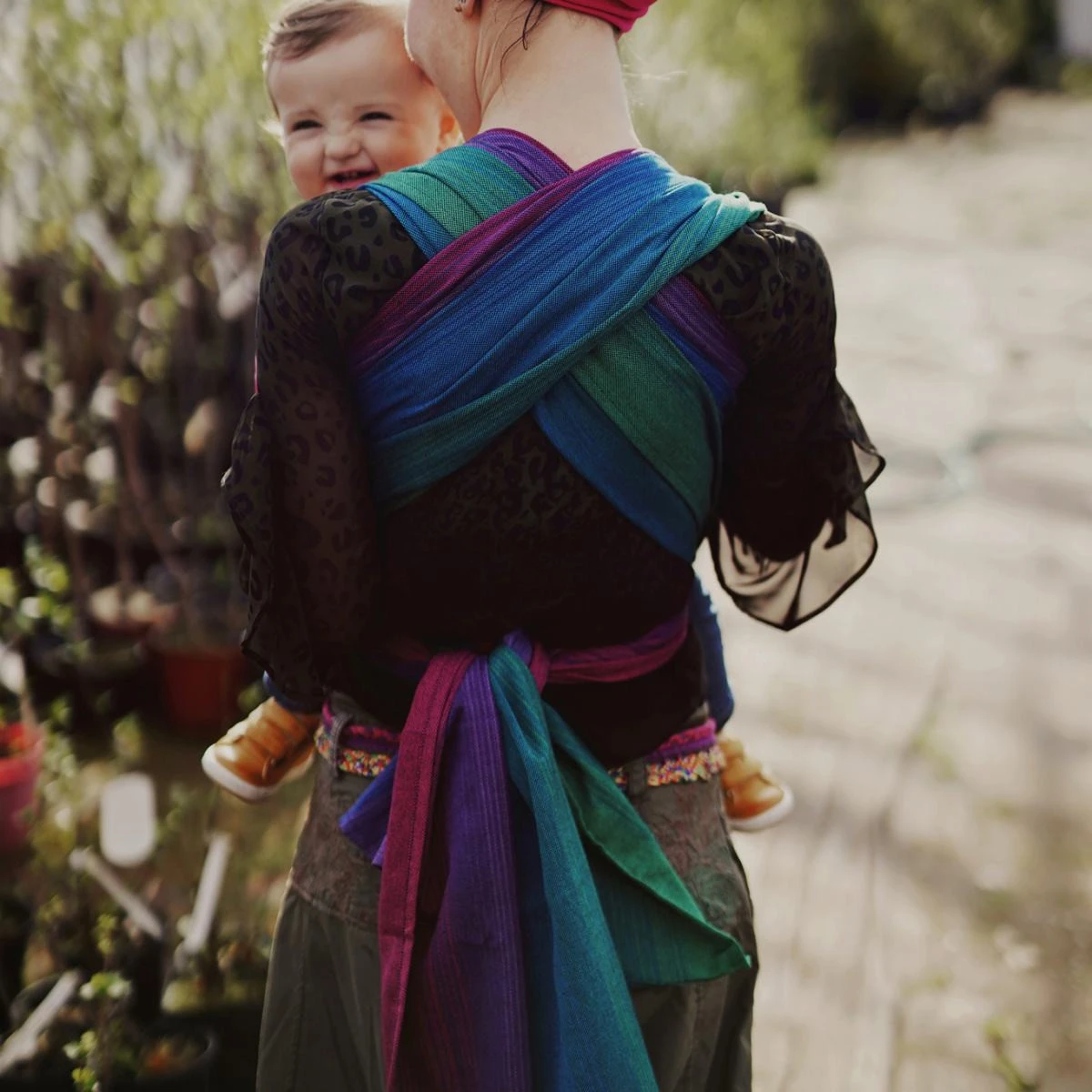 Partagez des moments de complicité avec votre bébé dans cette écharpe aux multiples couleurs.