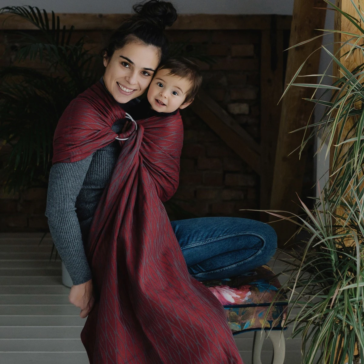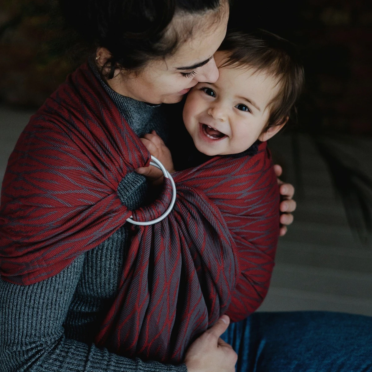 Un beau Sling rouge et graphite aux reflets argentés. Ce Sling Burning Flames est un splendide ! Portez bébé avec facilité lors des trajets courts tout en confort et douceur.