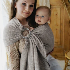 Un doux coloris brun pour envelopper bĂ©bĂ© dans un sling d’amour.