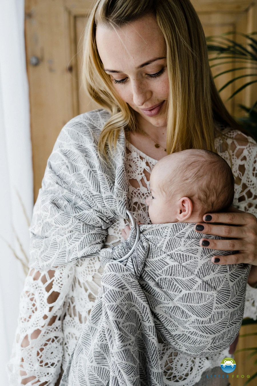 Le Little Frog RingSling Foliole est un joli porte-bĂ©bĂ© rapide Ă installer. Sans nĹ“ud, ce joli sling, dans les tons doux et naturels de blanc/gris et aux motifs de doux feuillage, permet de porter votre enfant tout contre vous (contre votre ventre ou sur votre hanche).Â