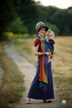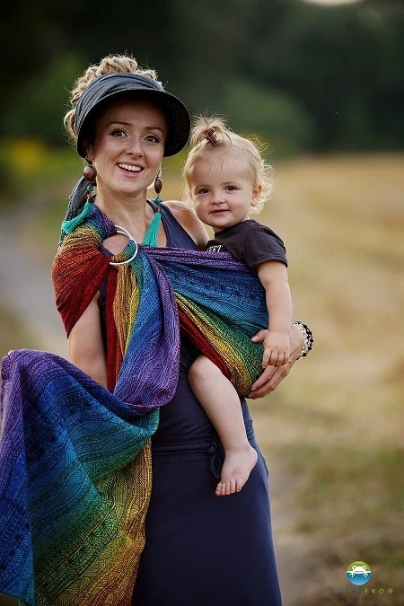 Little Frog RingSling Rainbow Harmony est un porte-bébé rapide à installer. Sans nœud, ce porte-bébé permet de porter son enfant contre soi (contre votre ventre ou sur votre hanche).
