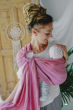 Ring Slings are easy to use, making them accessible to every parent. Simply pull the fabric through the sewn-in rings as instructed, tighten accordingly and you are ready to go! When folded, ring slings take up little space, so they are easy to carry and store, which is important, especially when travelling.