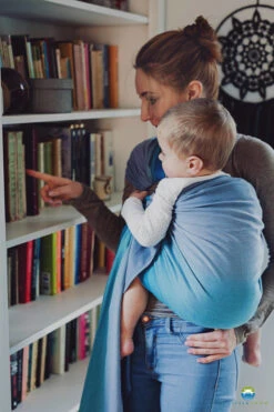 The Dark Lazurite ring sling in broken twill weave will work perfectly as the first ring sling for carrying babies and toddlers. It is woven from combed cotton and is soft from the first use, plus it has both edges in different colours for easy use. Ring Slings are easy to use, making them accessible to every parent. Simply pull the fabric through the sewn-in rings as instructed, tighten accordingly and you are ready to go! When folded, ring slings take up little space, so they are easy to carry and store, which is important, especially when travelling.