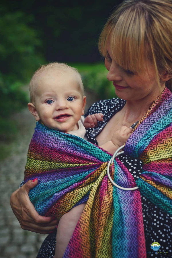 TAGS: babywearing, newborn layette, newborn baby gift, baby shower gift, multicolour ring sling, jacquard ring sling, baby ring sling, jacquard weave, first ring sling, baby wrap carrier