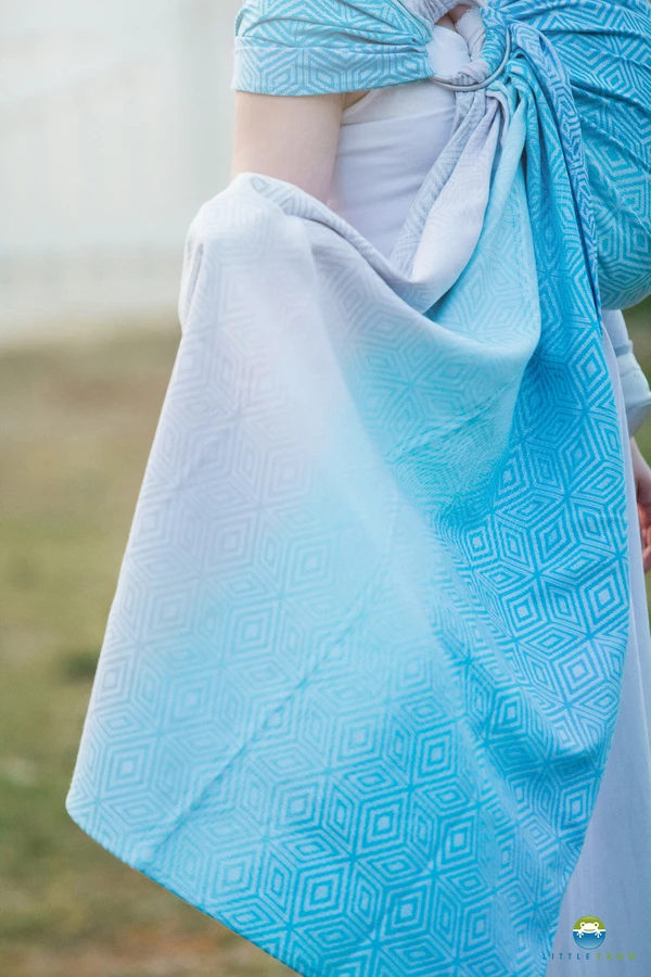 The Linen Sky Cube ring sling in jacquard weave will work perfectly as the first ring sling for carrying babies and toddlers. It is woven from combed cotton with blend of linen yarn to increases the comfort of wearing (especially for older children) and makes the sling more breathable, especially on hot days. This sling has both edges in different colours for easier tie. Ring Slings are quick and easy to put on, making them accessible to every parent. Simply pull the fabric through the sewn-in rings as instructed, tighten accordingly and you are ready to go! When folded, ring slings take up little space, so they are easy to carry and store, which is important, especially when travelling.