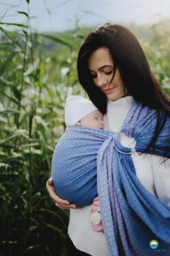 The Lovely Dawn heart woven sling will serve perfectly as a sling for toddler / sling for an older child. The loose heart weave gives the sling a soft and squishy feel, which, combined with its thickness, makes it comfortably carry a toddler of any weight. It is made with combed cotton and is soft from the first use, plus it has both edges in different colours for easy use. Ring Slings are quick to put on, making them accessible to every parent. Simply pull the fabric through the sewn-in rings as instructed, tighten accordingly and you are ready to go! When folded, ring slings take up little space, so they are easy to carry and store, which is important, especially when travelling.
