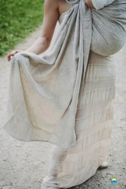 TAGS: babywearing, newborn layette, newborn baby gift, baby shower gift, beige ring sling, jacquard ring sling, baby ring sling, jacquard weave, first ring sling, baby wrap carrier