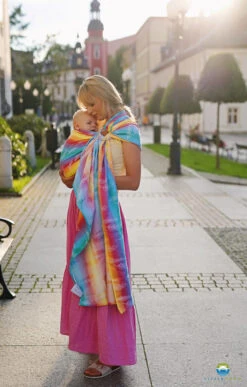 TAGS: babywearing, newborn layette, newborn baby gift, baby shower gift, multicolour ring sling, jacquard ring sling, baby ring sling, jacquard weave, first ring sling, baby wrap carrier
