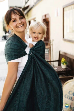 The Ocean Harmony ring sling in jacquard weave will work perfectly for carrying babies and toddlers. Fabric is soft and the pattern gives it a distinctive texture that makes it hold the tying better and does not loosen. Ring Slings are quick to put on, making them accessible to every parent. Simply pull the fabric through the sewn-in rings as instructed, tighten accordingly and you are ready to go! When folded, ring slings take up little space, so they are easy to carry and store, which is important, especially when travelling.