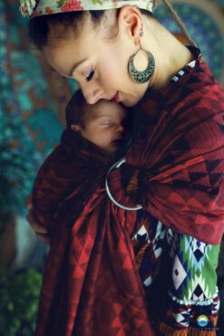 TAGS: babywearing, newborn layette, newborn baby gift, baby shower gift, red ring sling, jacquard ring sling, baby ring sling, jacquard weave, first ring sling, baby wrap carrier
