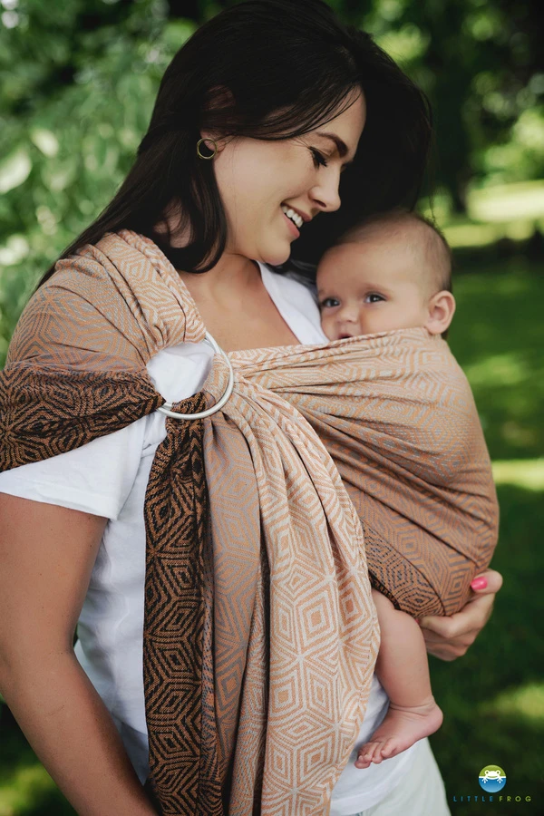 The Foxy Cube ring sling in jacquard weave will work perfectly as the first ring sling for carrying babies and toddlers. Fabrics with TENCEL™ fibre are ideal for summer. They are breathable, slightly slippery and very soft. Fabric with TENCEL™ regulates body temperature, absorbs moisture, is anti-allergenic and extremely durable and long-lasting.