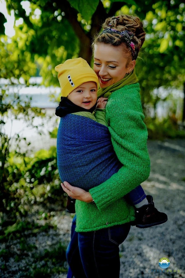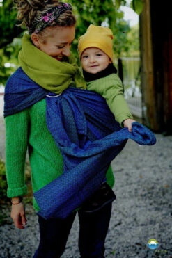 TAGS: babywearing, blue ring sling, heart-woven ring sling, toddler ring sling, heart weave, first ring sling, baby wrap carrier