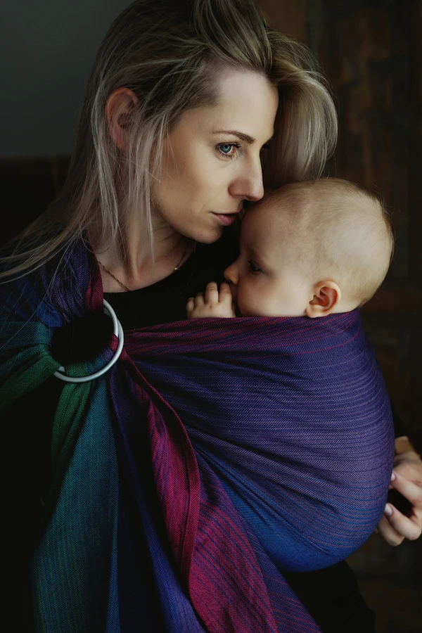 The Zircon ring sling in broken twill weave will work perfectly as the first ring sling for carrying babies and toddlers. It is woven from combed cotton and is soft from the first use, plus it has both edges in different colours for easy use. Ring Slings are easy to use, making them accessible to every parent. Simply pull the fabric through the sewn-in rings as instructed, tighten accordingly and you are ready to go! When folded, ring slings take up little space, so they are easy to carry and store, which is important, especially when travelling.